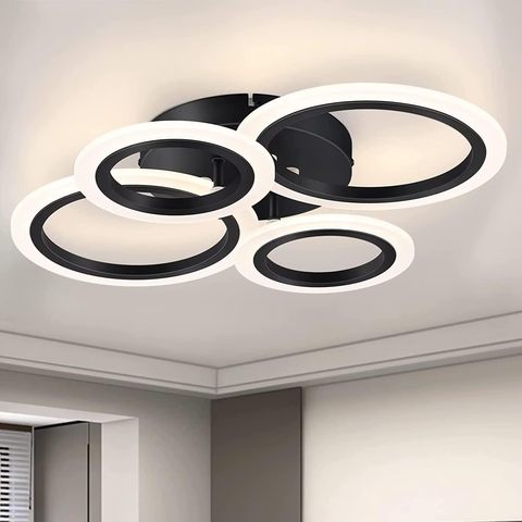 48 Вт современный 4-кольцевой светодиодный потолочный светильник с дистанционным управлением и регулируемой черной отделкой для гостиной, спальни, кухни