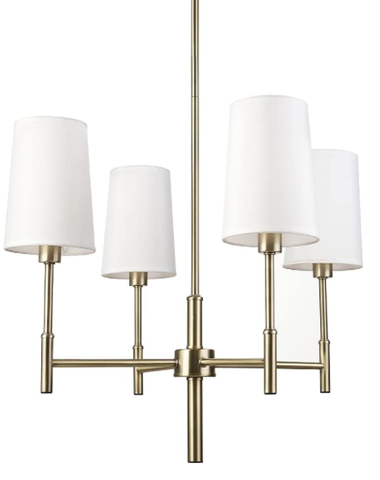 Античная латунная 5-световая люстра с белыми тканевыми оттенками, регулируемое линейное островное освещение для столовой и кухни