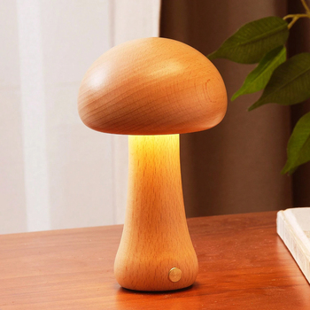 Veilleuse champignon rechargeable USB, lampe LED à commande tactile en bois pour chambre d'enfant, décor de pépinière
