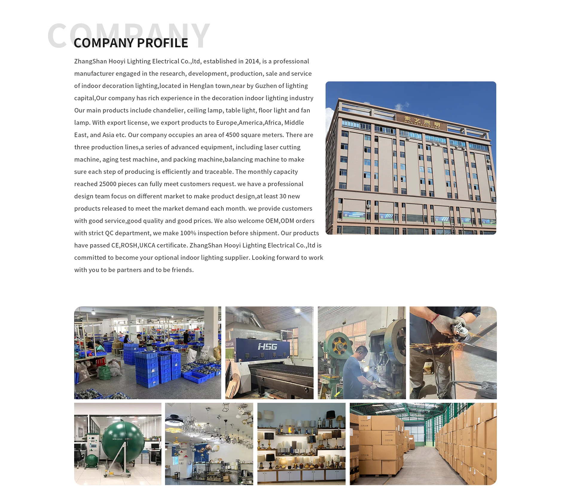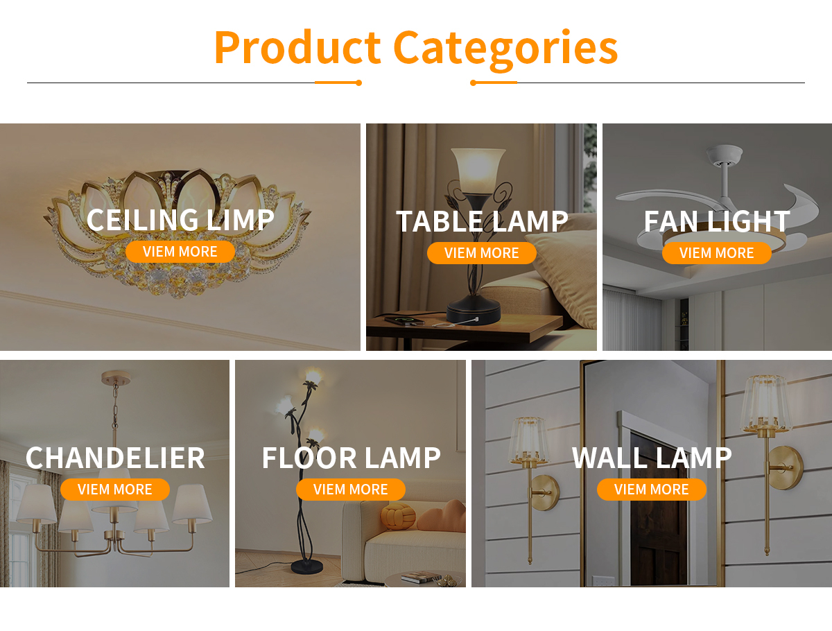 주요 제품:샹들리에 & 팬 램프, 천장 램프, 벽 램프, 테이블 램프, 바닥 램프