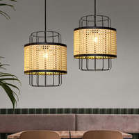 जापानी शैली विचर चंडेलियर खोखला लैंप छाया ई 27 बेस हस्तनिर्मित रतन फांसी दीपक